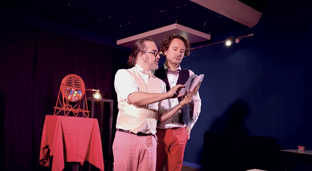 Les Michels sont un duo de musiciens qui improvisent à la demande du public des chansons de chanteurs et chanteuses décédés, comme Michel Brassens, Michel Nougaro, Michèle Piaf… ou même Michel Jackson si c’est demandé gentiment et qu’on ne craint pas leur anglais ! Dans la joie et la bonne humeur, ce duo loufoque partage contrebasse, voix et ukulélé pour revisiter le répertoire du patrimoine culturel francophone, quitte à mélanger parfois les styles musicaux… Grâce à leur talent musical et à leur rapport au public empli de générosité, Les Michels font de ce spectacle interactif un vrai moment de bonheur collectif en musique.