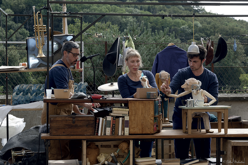 Les trois artistes du spectacle vous convient à une création artistique collective faite de bricolage, scénographie, marionnettes et bruitages. Comment partir d'un univers ou d'un livre pour raconter autrement ?